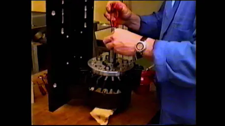 スイスの工房で、従業員が試作品のbinary時計をつけている