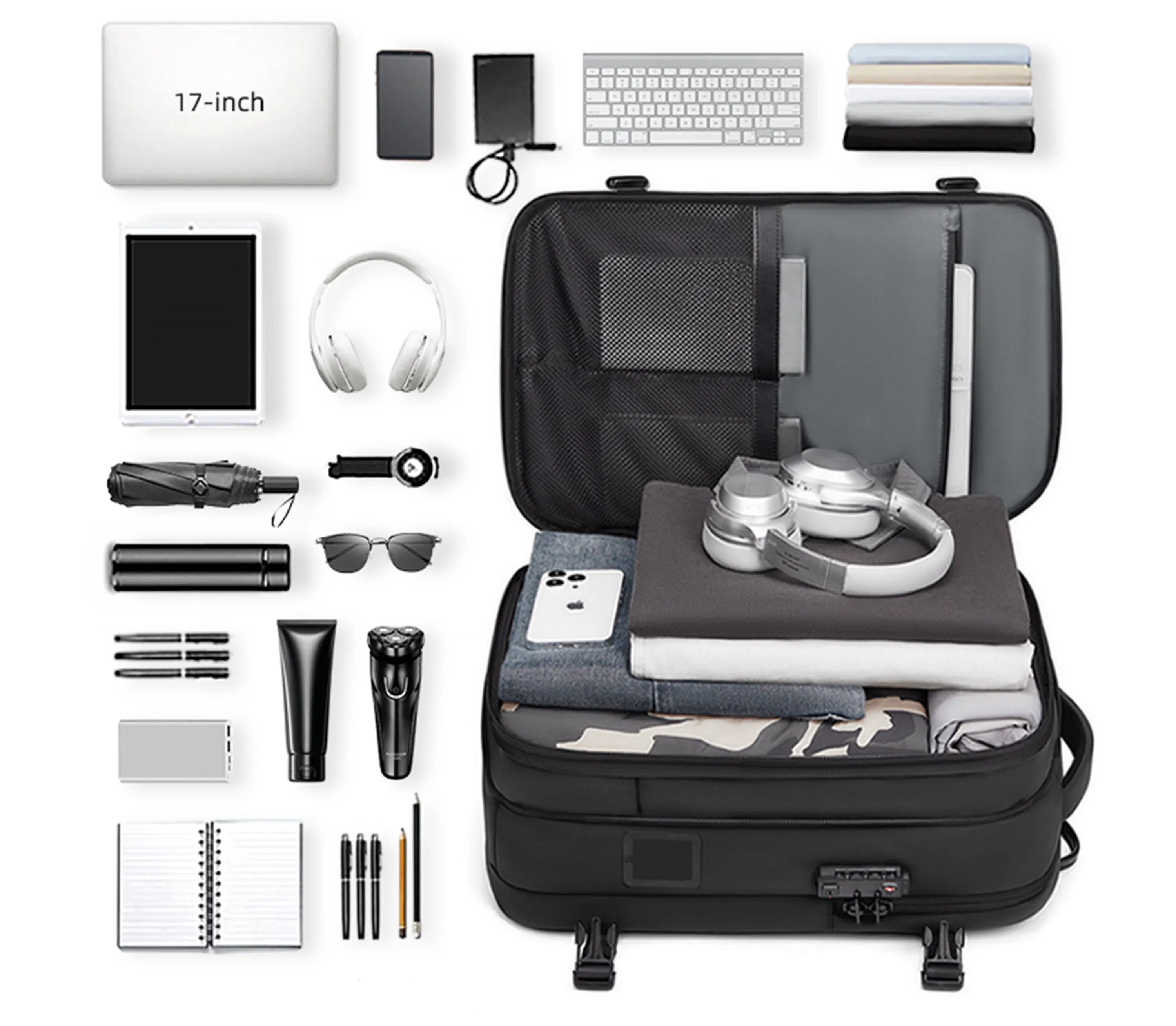 ポンプ不要の内蔵式真空圧縮システムを搭載し、25Lから最大60Lまで自在に変化するフレキシブル設計。防水仕様で突然の雨にも安心、TSA認証ダイヤルロックで海外出張や旅行も安全に。さらに高耐久SBSジッパーとPC専用収納スペースを備え、通勤から長期の出張まで一つで対応できる頼れる万能ギア。