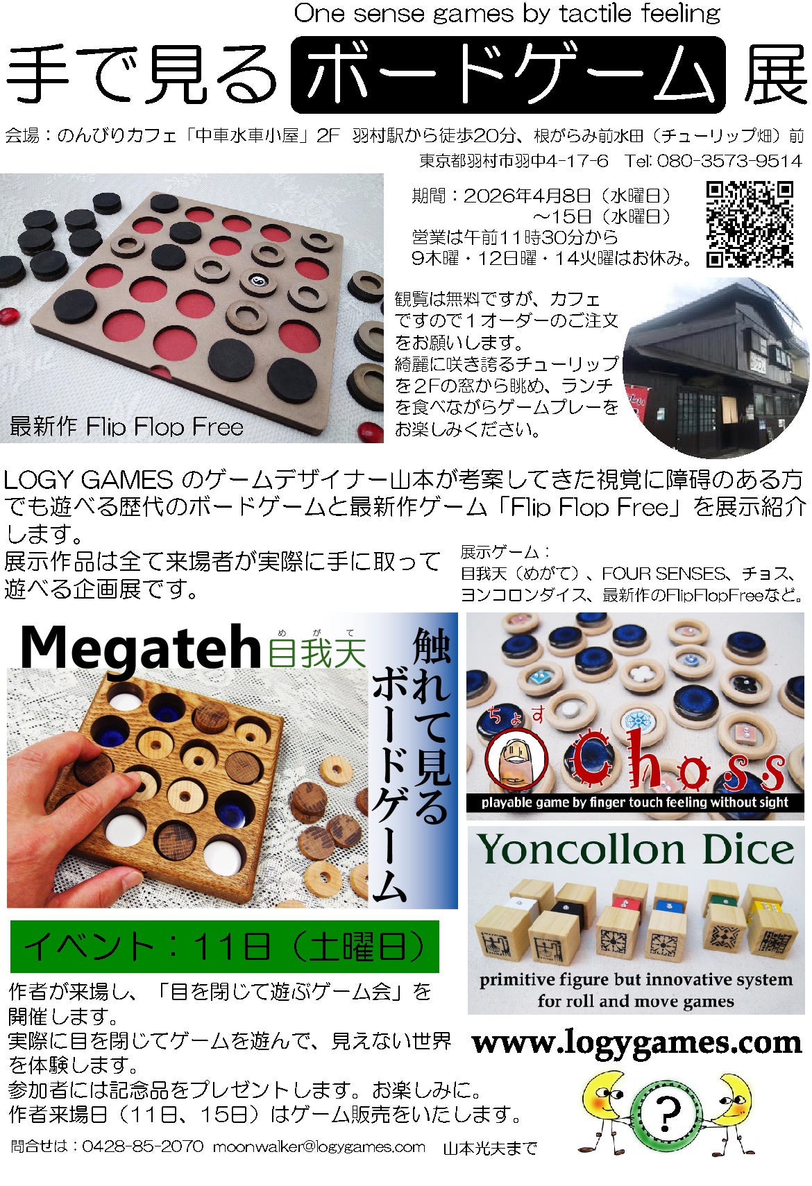 2026/04/08 10:06本日8日~15日まで東京都羽村市にある「のんびりカフェ車中水車」2Fギャラリーで「手で見るボードゲーム展」を開催します。昨日は準備をしてきました。無事に本日から始められます。会場のカフェの前の広大な水田には沢山のチューリップが咲き誇っています。丁度チューリップ祭りの期間中です。11日土曜日は作者主催の目を閉じて遊ぶゲーム会イベントを開催します。参加者には可愛い参加賞をプレゼントします。ぜひお越しください。LOGY GAMES ギフトボックス山本 もっと見る
