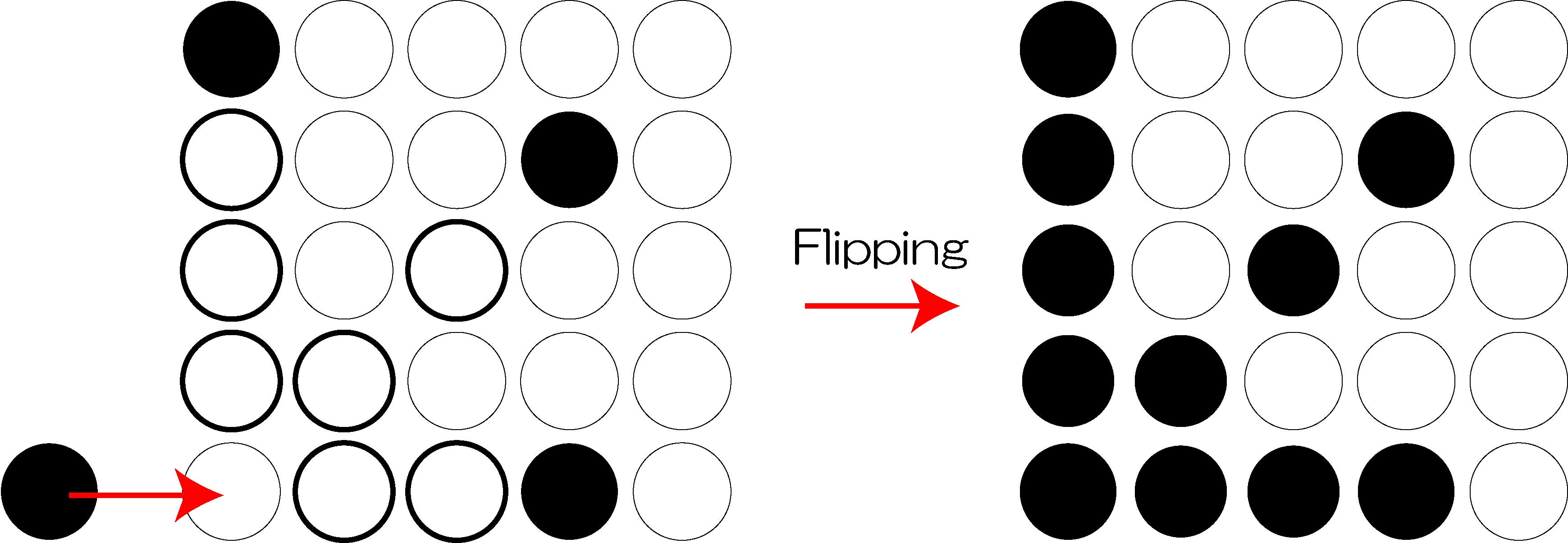 ただし敵が直前に反転石で返した駒を続けて反転石でひっくり返すことはできません。