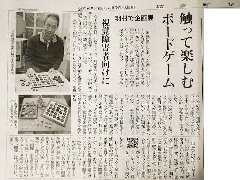 読売新聞多摩版に「目で見るボードゲーム展」の開催情報とクラウドファンディング情報を掲載してもらいました。