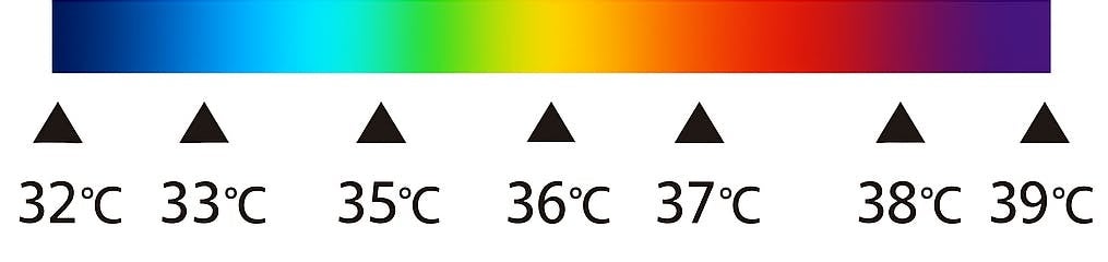 使用後は青〜緑のエリアに変化。頭部の熱を確実にコントロールしている証です。ヒトは頭部が1〜2℃冷えるだけで、体全体の熱ストレスが大幅に軽減されます。「ヘッドアイスギア」の実測は一目瞭然。