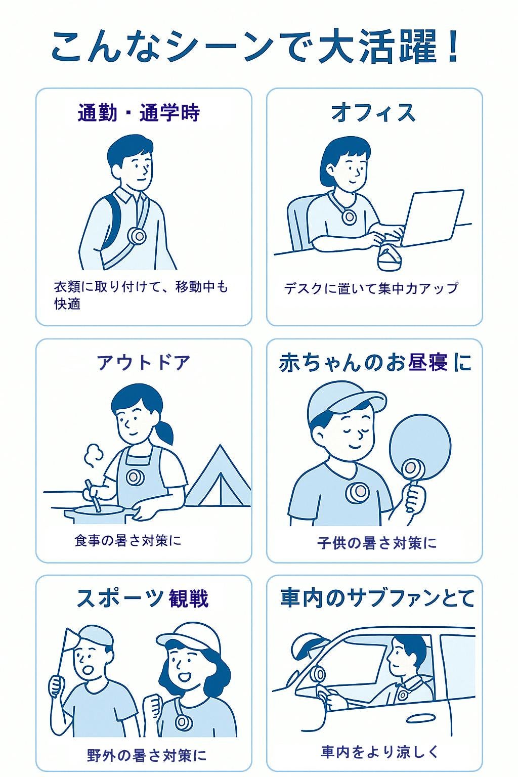 2026/04/15 18:00ポケクールは、ベビーカーの幌やフレーム部分にも装着しやすいのが魅力です。赤ちゃんとのお出かけでは、どうしても熱がこもりがち。そんな時にやさしく風を送ることで、快適なお出かけ時間をサポートします。ママ・パパが手であおぐ必要がなく、両手でしっかり押せるので安心。夏のお散歩・公園・買い物でも頼れる存在です。 もっと見る通勤の汗問題に。朝の快適さが変わります