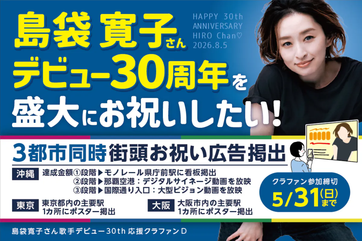 このプロジェクトは、島袋寛子さんの歌手デビュー30周年を盛大にお祝いするための4つの企画のうちの1つです。