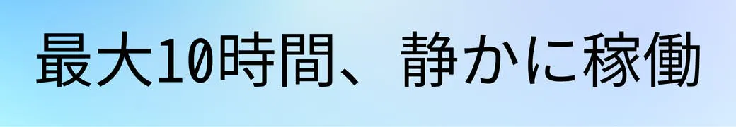 弱風なら最大約10時間、映画5本分の長時間ノンストップで風を送り続けます。強風でも約3時間連続稼働可能。静音性にも優れているので、オフィスや電車内でも使えます。