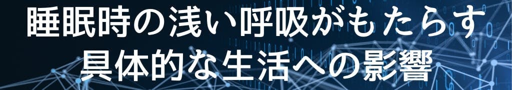 - 呼吸のリズムが乱れていると、睡眠の質に影響を及ぼすことがあります。十分な休息がとれないことで、翌日の疲れや集中力低下につながる可能性も。まずは、睡眠中の自分の状態に目を向けることが大切です。