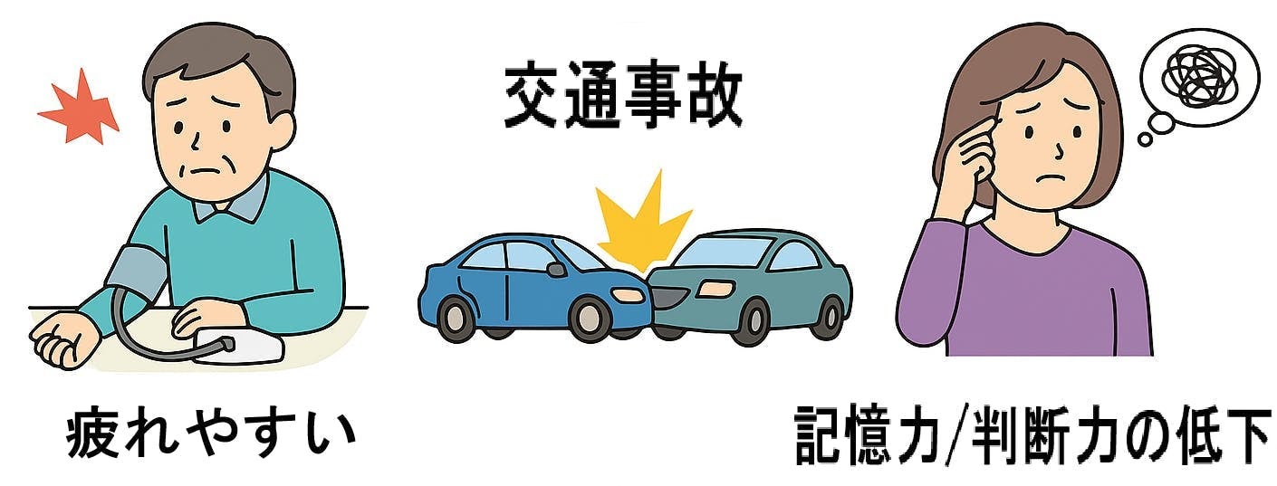 眠りが浅くなると、日中に強い眠気を感じやすく。。。その結果、運転時や集中が必要な場面で注意力が低下するケースも。