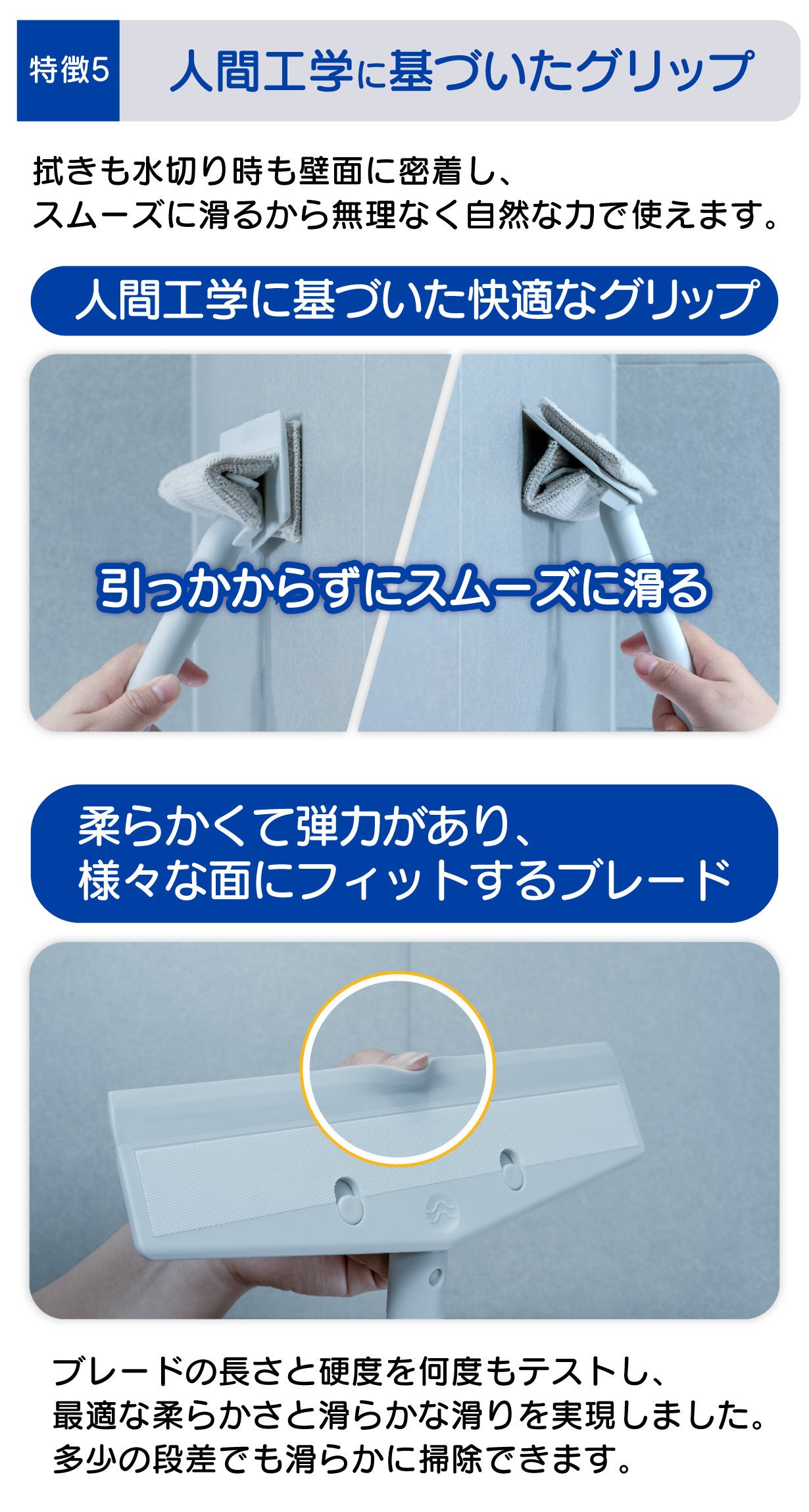 私たちHuroyamaは、日常の家庭内で感じる「ちょっとした不満」を実用的な解決策へと変えることで、“きれいにする”という行為をデザインの力で実現します。HUROYAMAの歩みは、「ヘアキャッチャー」から始まり、革新的な「トイレブラシ」へと続きました。この「3in1スクイージー」は最新のイノベーションであり、日々の掃除をシンプルにし、生活に輝きをもたらすデザインのための、揺るぎないこだわりを体現しています。この商品は、Huroyamaが追求する“掃除の卓越性”の新しい章の幕開けなのです。