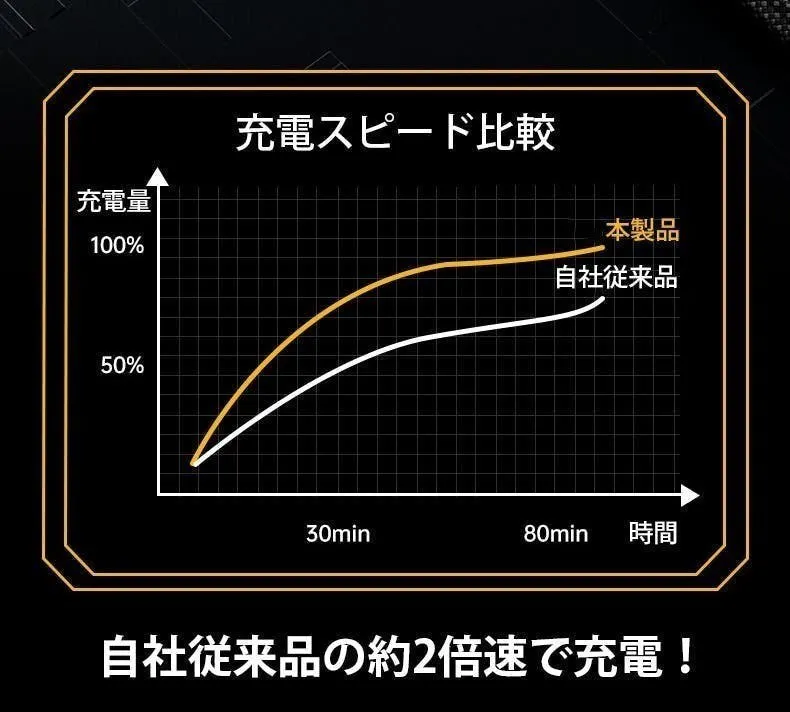 低温制御システムを搭載しているため、充電中の温度上昇を自動で抑えられる上、長時間の使用でも発熱が少なく、常に安定した電力供給を維持します。