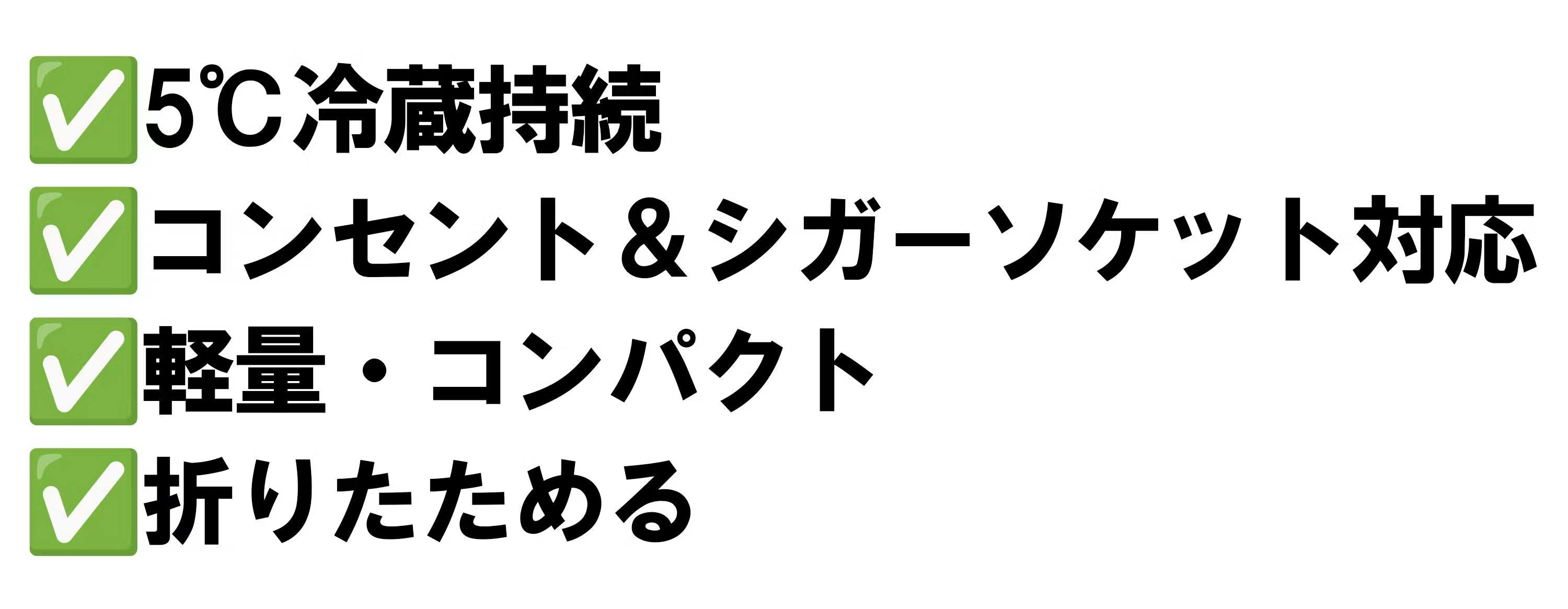 その結果、従来の冷蔵・保冷機器では難しかった「軽量化」と「コンパクト設計」を実現。わずか約2.4kgという持ち運びやすさでありながら、しっかりと5~55℃の温度管理が可能です。