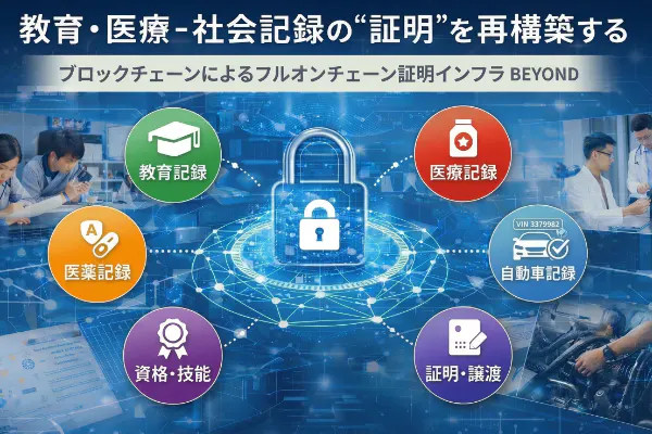 ・本プロジェクトでは、教育・医療・社会記録などのあらゆる“証明データ”を、ブロックチェーン上で安全に管理・検証できる社会基盤「BEYOND」を構築します。