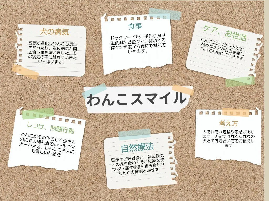 これまでに、私は様々な自然療法の勉強を深め、犬の健康を守るための情報を発信してきました。また、犬の健康に配慮した商品を開発し、販売していく予定です。SNSやホームページを通じて多くの飼い主さんに情報を提供、だからとこうしないといけないと型にはめるのではなく個々を大切に考え提案する事におもきをおいております。情報や周りの声などに迷われたり傷つく人も減らしたいのです。飼い主さんも犬も違えばその数だけ生活スタイルがあります。現在は、さらに多くの方々に自然療法の良さや私の思い、思い出などを伝えるために、新たな宣伝方法としてお絵かきムービーの制作・販売を計画しています。