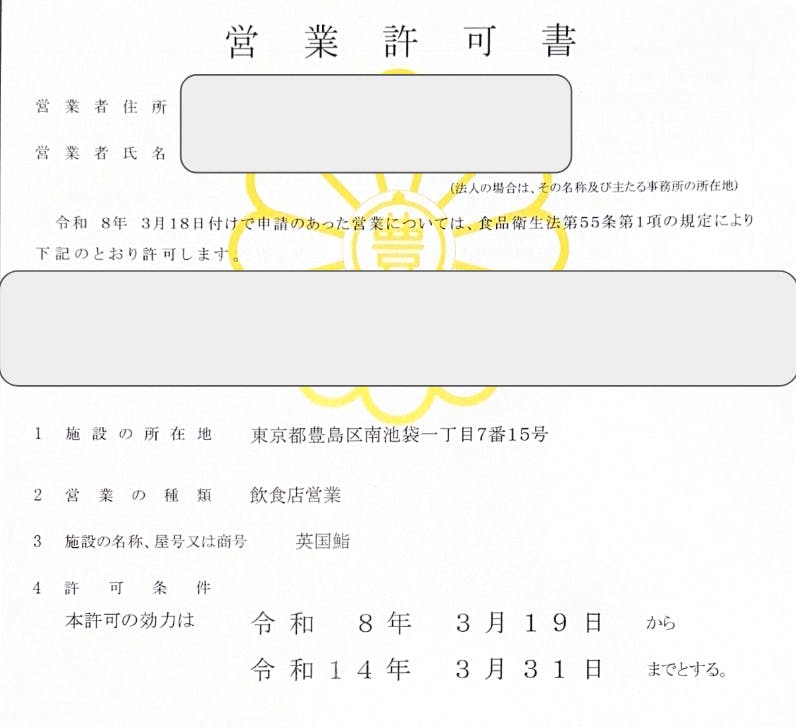 昨日は、豊島区保健所にて営業許可書を取得いたしました!