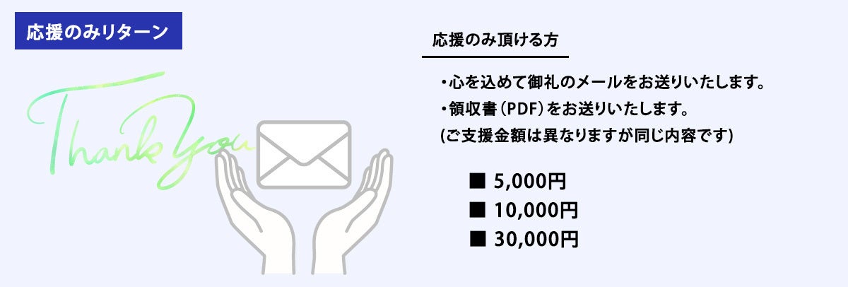 応援いただける方へ、様々なリターンをご用意いたしました。