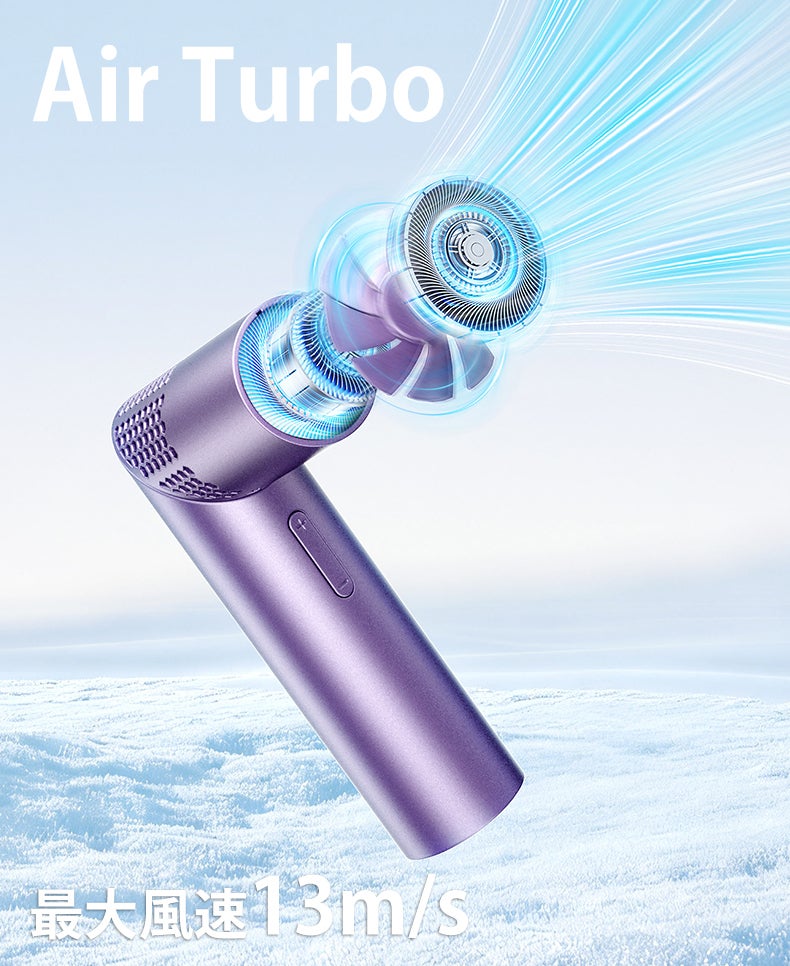 さらに最大20,000RPMの高速ブラシレスモーターを搭載することで、最大風速13m/sのパワフル送風を実現。