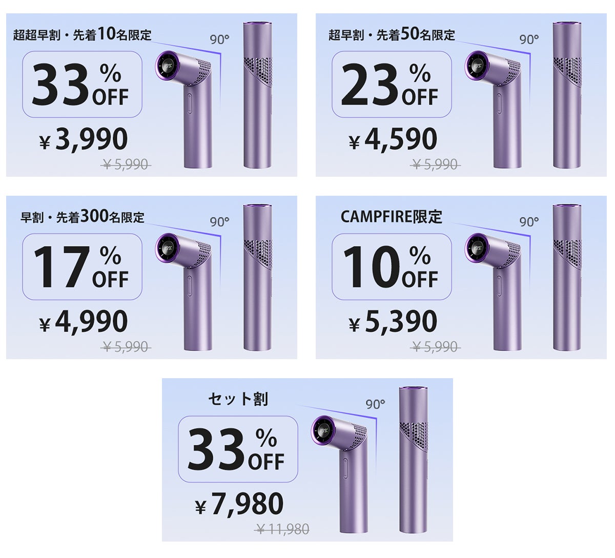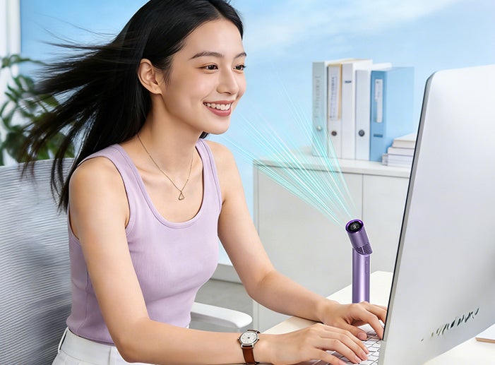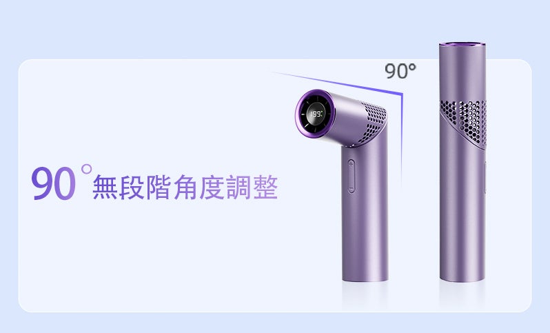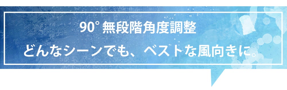 さらに、90°無段階の角度調整に対応。卓上でも、手持ちでも、シーンに合わせて“ちょうどいい風”を届けます。