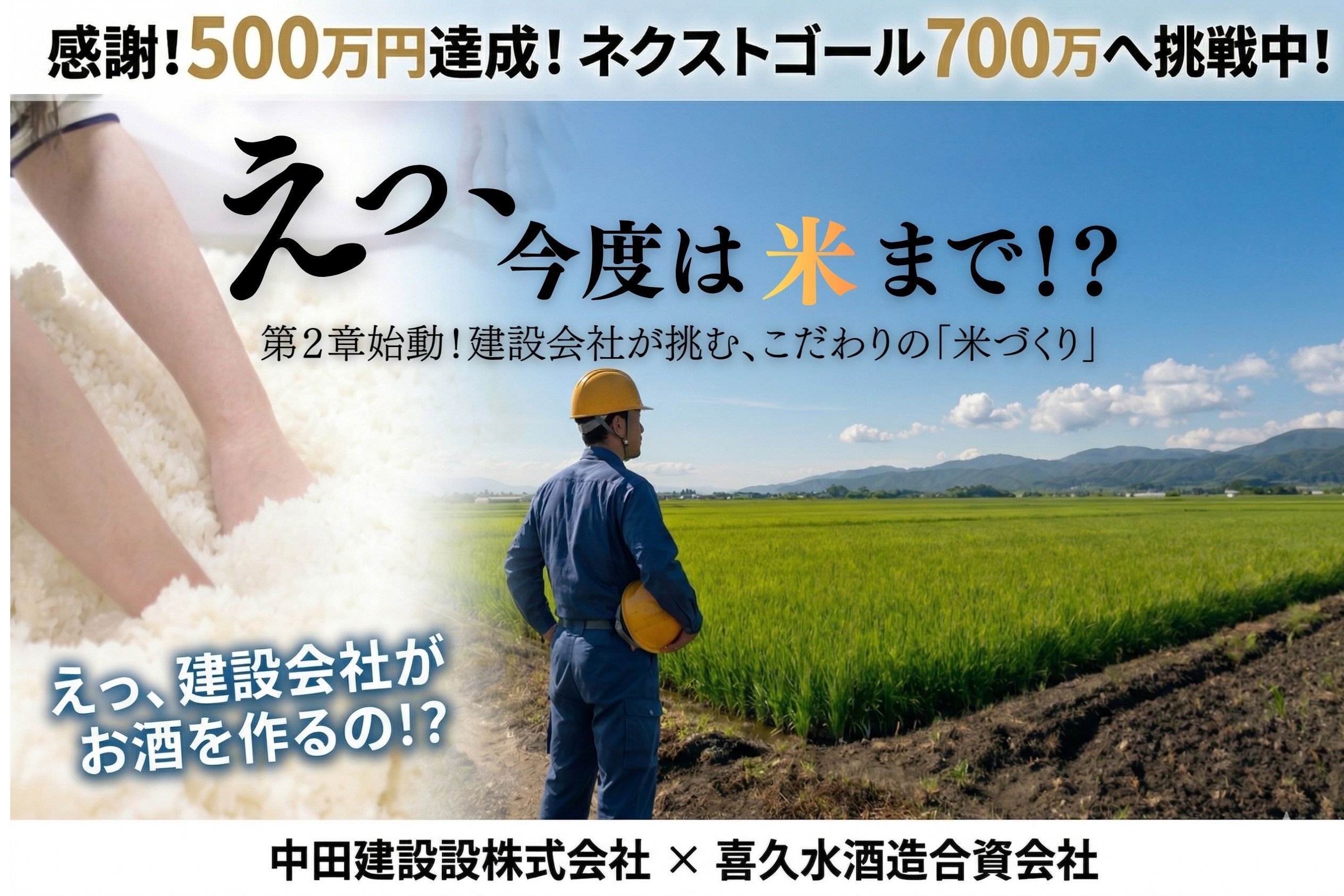 • 能代を愛する皆様、喜久水を応援してくださる全国の皆様へ。信じられないような光景を、今、私たちは目の当たりにしています。 目標の300万円、そしてネクストゴールの500万円。 皆様の熱い想いに支えられ、新生・喜久水は「復活」という第一歩を、最高の形で踏み出すことができました。心より、感謝申し上げます。この圧倒的な応援をいただく中で、私たち中田建設、そして蔵人たちの胸には、ある強い決意が芽生えました。「ただ復活させるだけでは終わらせない。喜久水を、能代の、日本を代表する銘酒へと育て上げたい」そこで私たちは、このプロジェクトの第2章を始動させることを決意しました。 次なる目標は、700万円。 その使い道は、お酒の味の根幹である「米づくり」への挑戦です。良い素材を磨くために、私たちは「土」へ還る。これまで喜久水は、素晴らしい酒米を仕入れることでその味を守ってきました。 しかし、ここから先、さらに高品質で唯一無二の酒を醸すためには、自分たちの手で、能代の土を耕し、理想の米を育てることから始める必要があると考えています。「技術があるから旨い酒ができるのではない。最高に輝く素材があり、それを高めるために技術があるのだ」私たちはそう確信しています。 中田建設は、長年この能代で大地と向き合ってきました。その知見を活かし、喜久水だけの専用圃場(田んぼ)を整え、米一粒一粒に魂を込める。 この「素材へのこだわり」こそが、新生・喜久水の新たなアイデンティティとなります。その先の景色:150年の静寂を、未来の宝物へ。そして、この「米づくり」の挑戦をクリアした暁には、さらなる高み、1000万円(第3章)を見据えています。 それは、お酒を育む「聖域」である国登録有形文化財・トンネル貯蔵庫の永続的な保全です。120年以上変わらぬ12℃の静寂を守り、100年後の子供たちに「この場所があるから、能代の酒は旨いんだ」と胸を張って語り継ぐために。 老朽化を食い止める修理や修繕ではなく、未来へ繋ぐ「磨き上げ」のために。私たちはこの歩みを止めません。「復活」の先にある、「飛躍」の物語へ。皆様と共に醸すこの物語は、まだ始まったばかりです。どうか引き続き、新生・喜久水の「第二章」を共に見届けていただけないでしょうか。共に、能代の未来を醸しましょう。中田建設株式会社・喜久水酒造 合資会社 一同 もっと見る