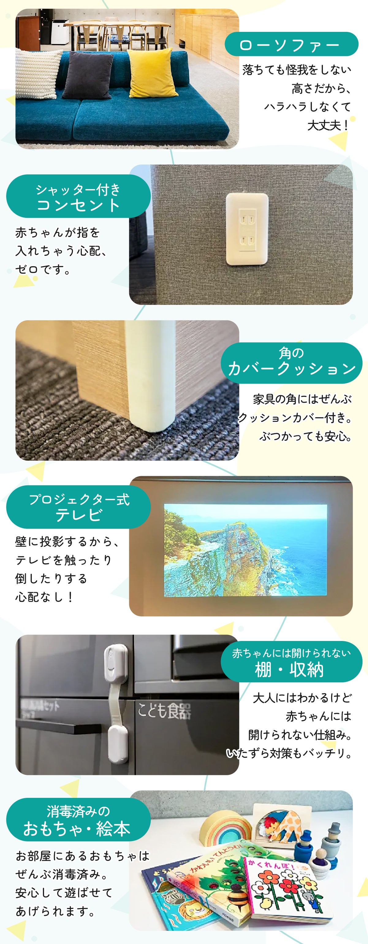 「触らないで!」「危ない!」 おやこホテルでは、その言葉が自然と出なくなるくらい、安全対策を徹底しています。