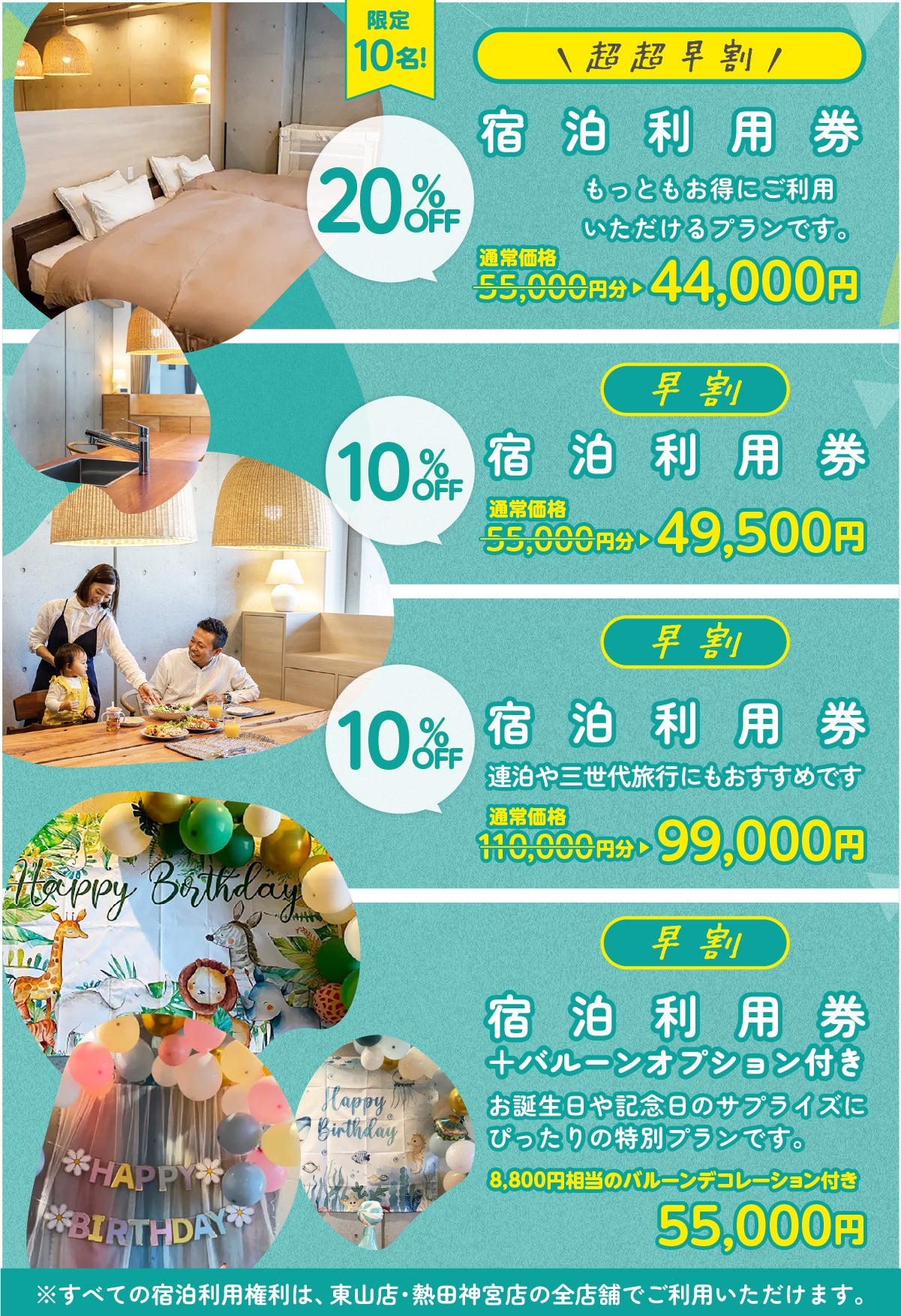 今回のプロジェクトでは、CAMPFIRE限定の特別価格でおやこホテルへ宿泊いただけるリターンをご用意しました!