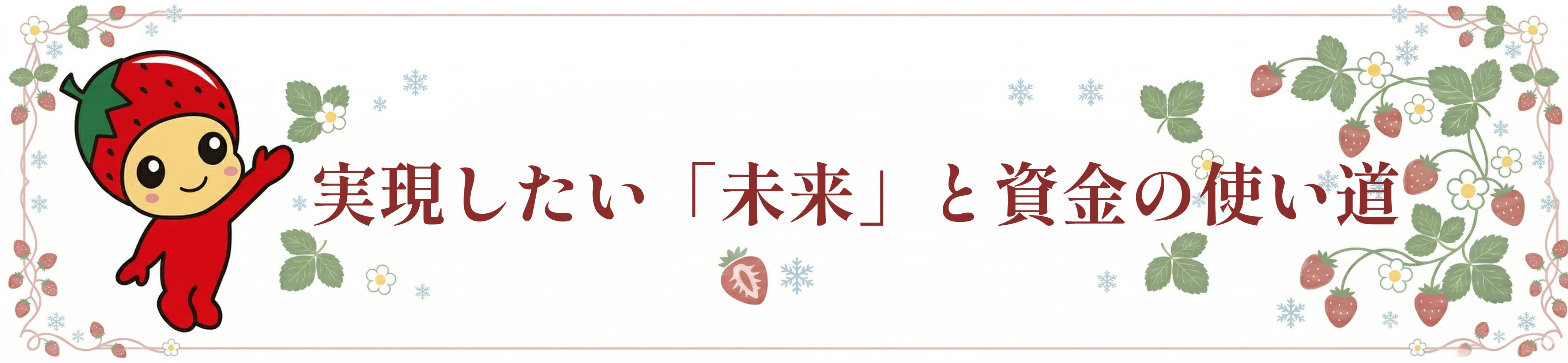 皆様から頂いたご支援は、いちご村の「次の20年」を創るための投資として、以下の段階に分けて大切に使わせていただきます。