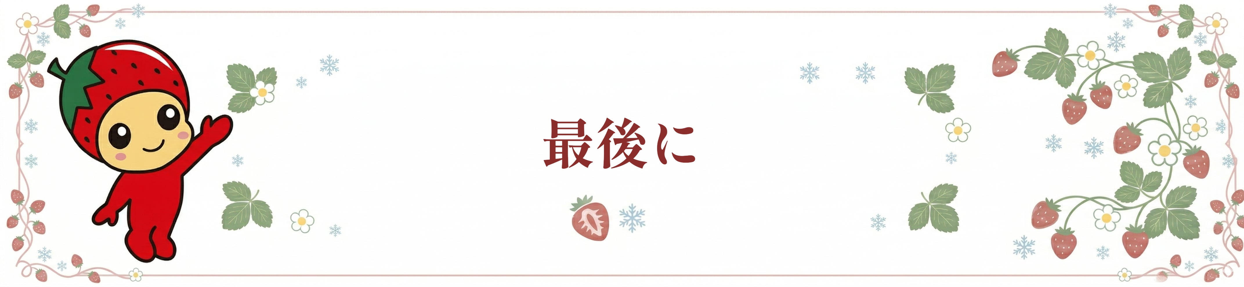 どうか、いちご村といちご村がある地域の「次の20年」を共に創る仲間に、皆様もなっていただけないでしょうか。温かいご支援と応援を、心よりお願い申し上げます。