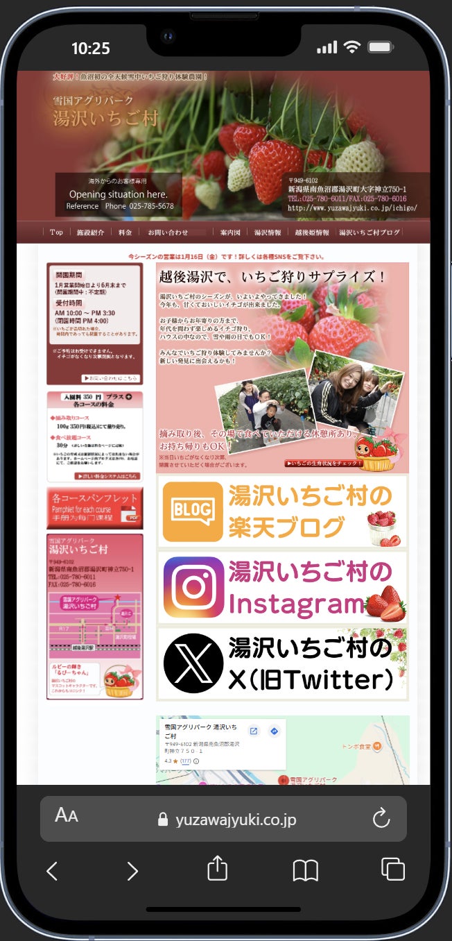 この最高の味を届けるため、関越自動車道湯沢インターからすぐの好立地でいちご村を運営し、