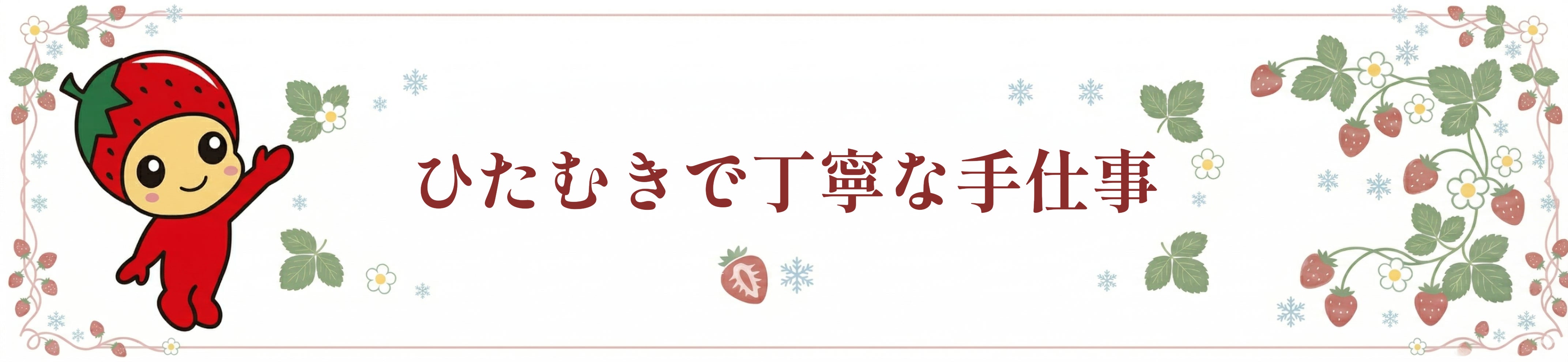冷凍いちごのヘタ取りいちご作りは、機械では決して代われない「人の手」が必要不可欠です。