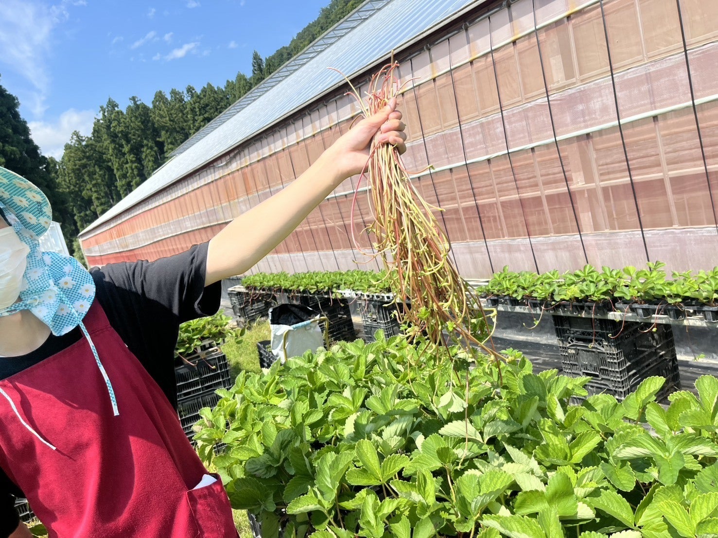 苗のランナー取り: 翌年の収穫を左右する、根気のいる繊細な作業