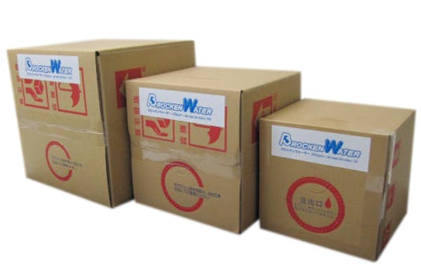 水成二酸化塩素水を使用して、”殺菌” ”消臭”を目的にしている商材を業務用ボックス(Brocken Waterを5L,10L,20L)に入れて配送し、使用するお客様で詰め替えたりして使用をしています。