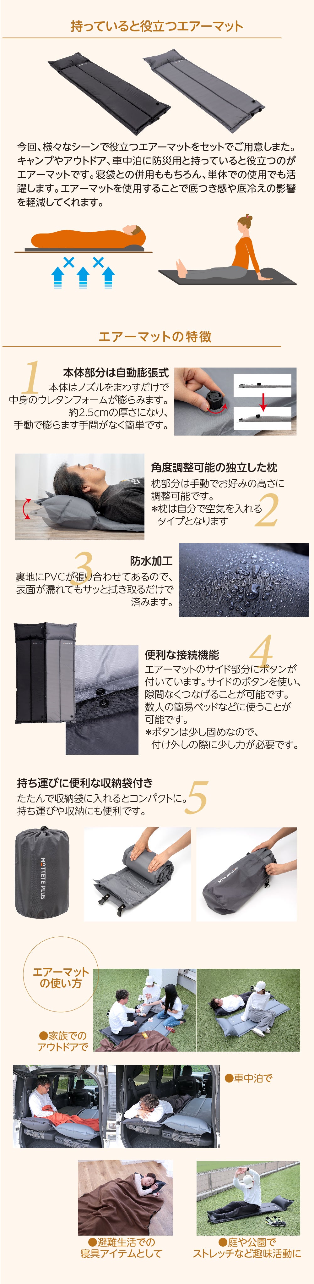 防災士考案 まるで岩盤浴のようなあたたかさ!多機能寝袋+エアーマットセット