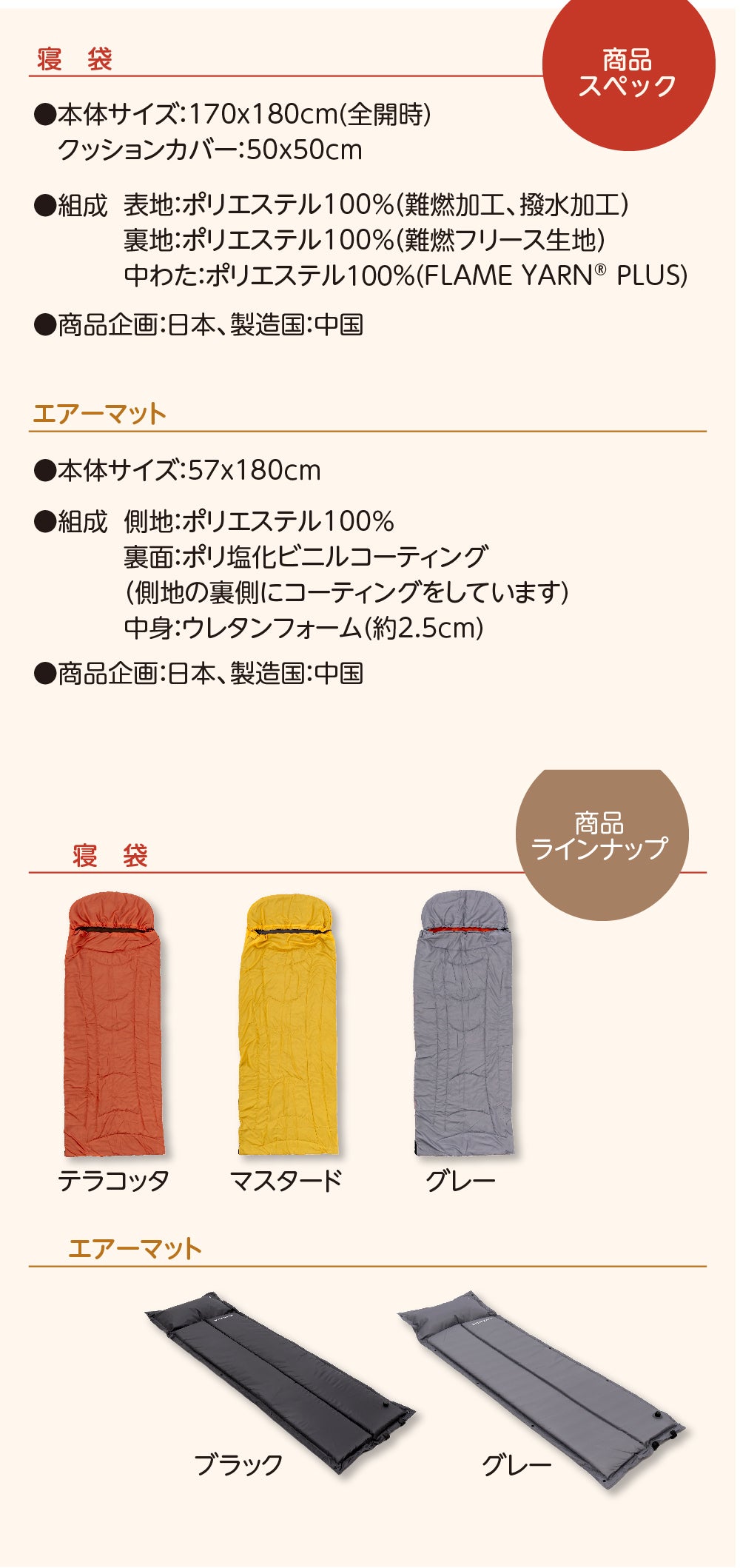 ●特別価格30%OFF 寝袋(テラコッタ)+エアーマット(グレー)