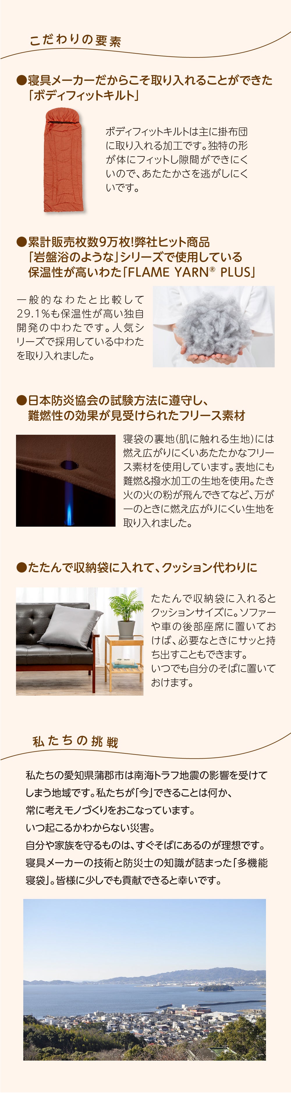 私たちガマカ工業株式会社は愛知県蒲郡市にある寝具・インテリア製造メーカーです。