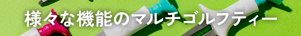 クラブもウエアも最高のアイテムを手にしたのち、あと一歩のスコアアップを狙うなら注目すべきはゴルフティー。ゴルフティーに機能を持たせたマルチゴルフティーでライバルから差をつける!