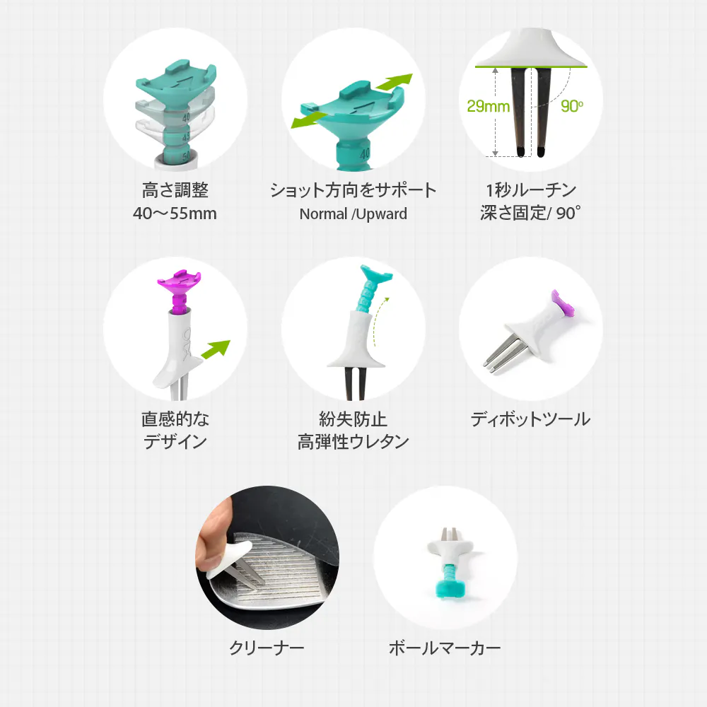 ティーを挿す高さはいつも同じ高さであることが重要です。または、いつもよりもちょっと高く、ちょっと低くなど調整するにも勘に頼るのではなく定量的にセットすることが大切です。