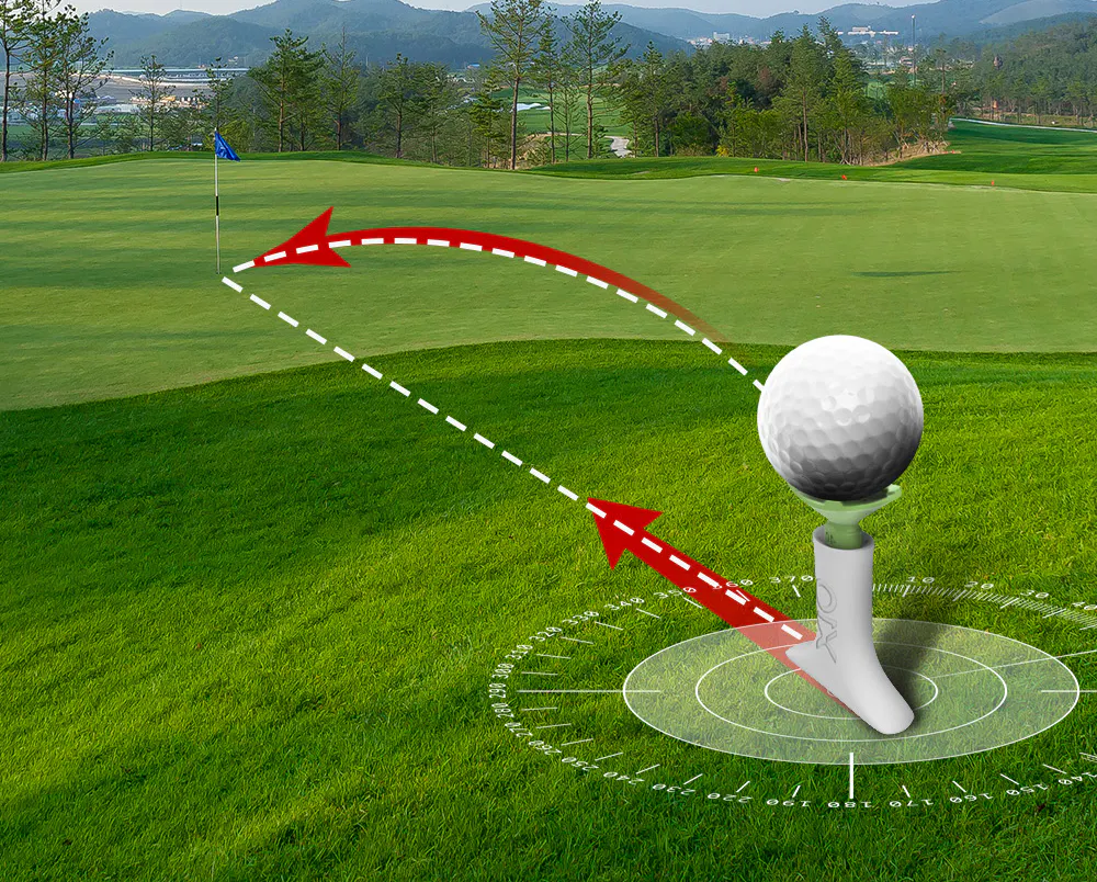高弾道側はドライバーヘッドとボールのインパクト角度を最適にし、より飛距離を伸ばすサポートを行います。