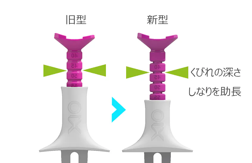 しっかりした硬質素材で作られたボールを保持する上部は、ドライバーショット時の強い力に対しては曲がることができます。