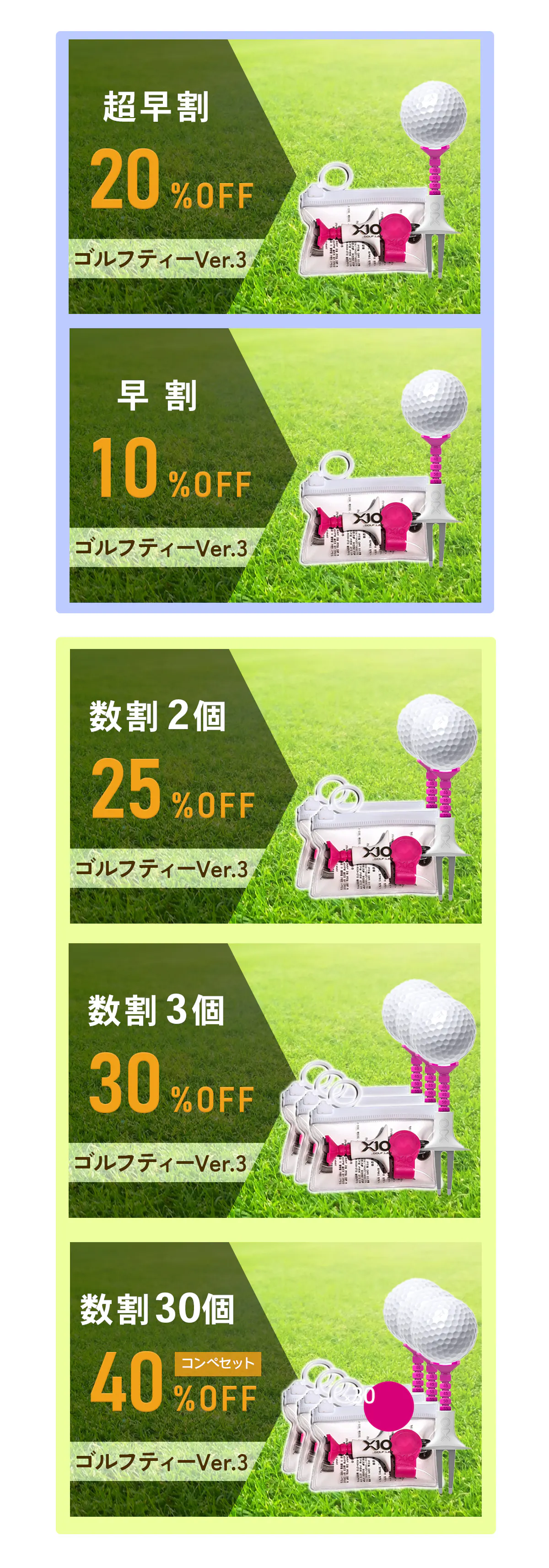 ※2:送料の都合もあり、複数セットの数割がお得です。コンペ用に30個セットも用意しております。