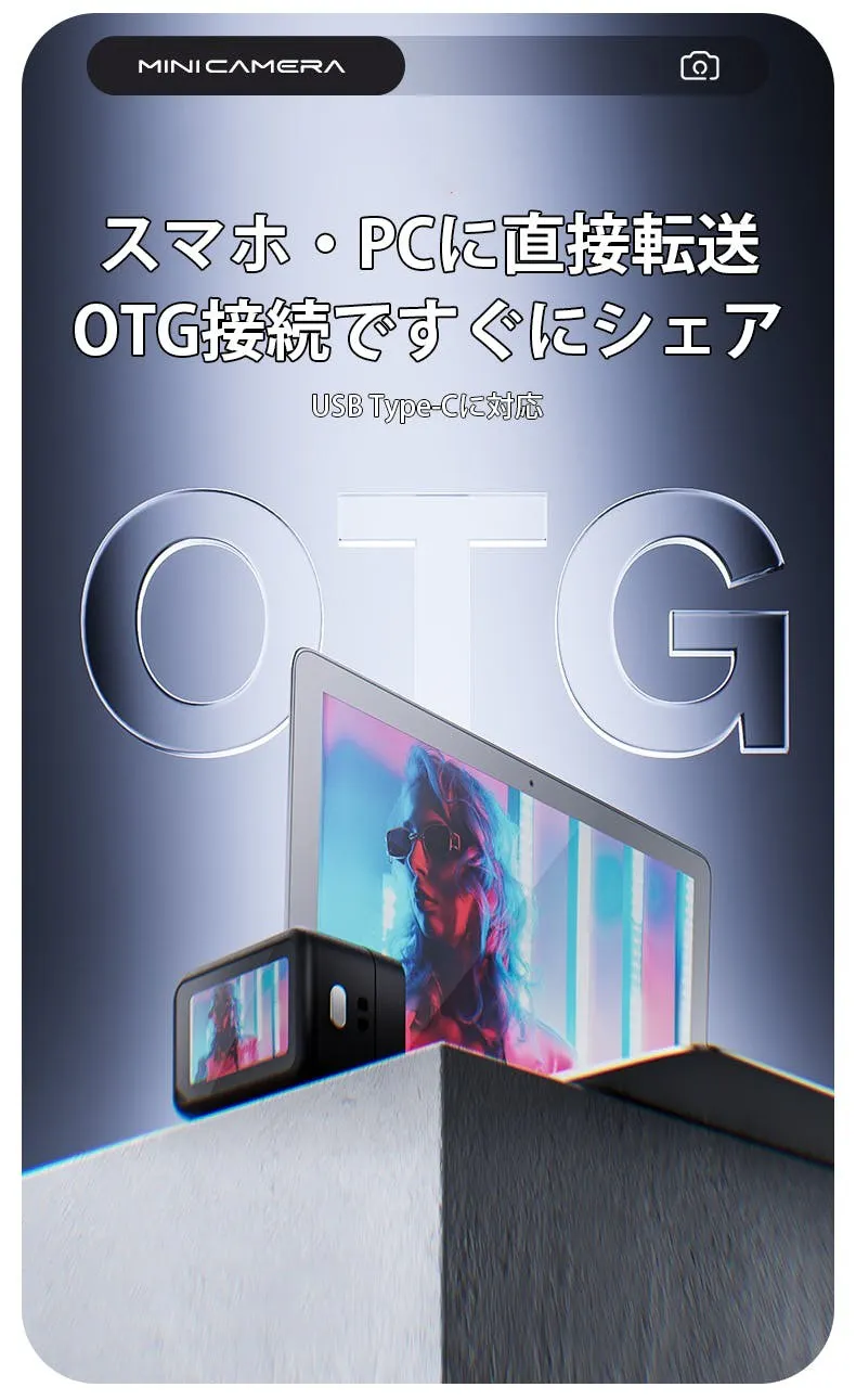 OTG機能に対応しているため、撮影したデータをケーブルでスマホやPCへ簡単に転送可能。専用アプリを使わず、撮ってすぐに共有や保存が行えます。