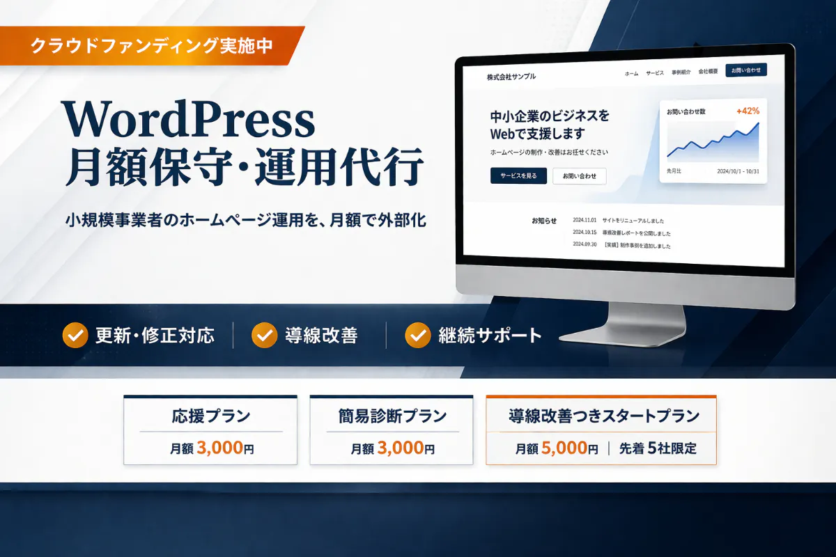 WordPressサイトの月額保守・運用代行サービスの立ち上げを進めています。