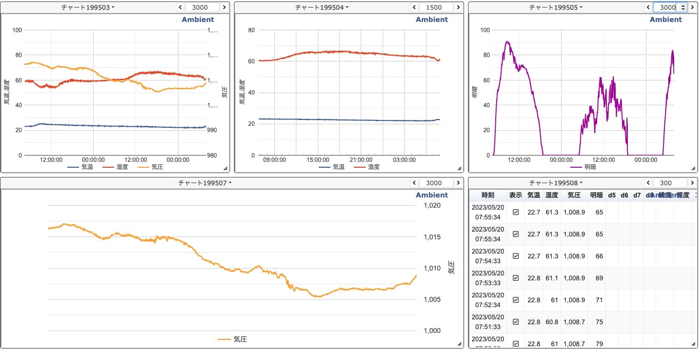 下のURLは当方で運用している公開ダッシュボードです。https://ambidata.io/bd/board.html?id=59777