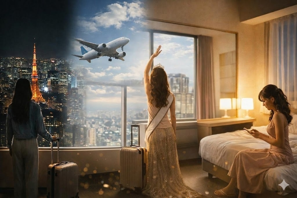 私は現在、ミスユニバースジャパン2026日本大会に向けて、東京で行われる研修に参加しています。