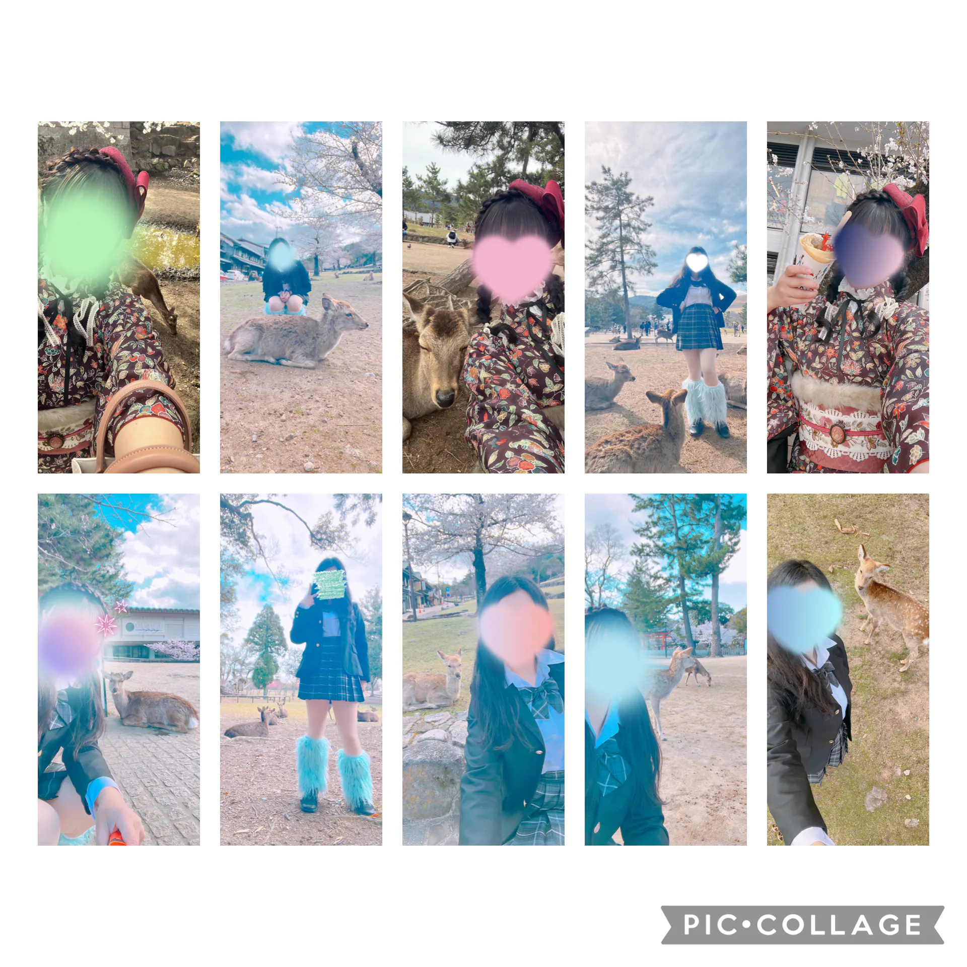 着物自撮りのオフショットや、JK制服で鹿さんや桜と撮ったチェキの全11種類*!