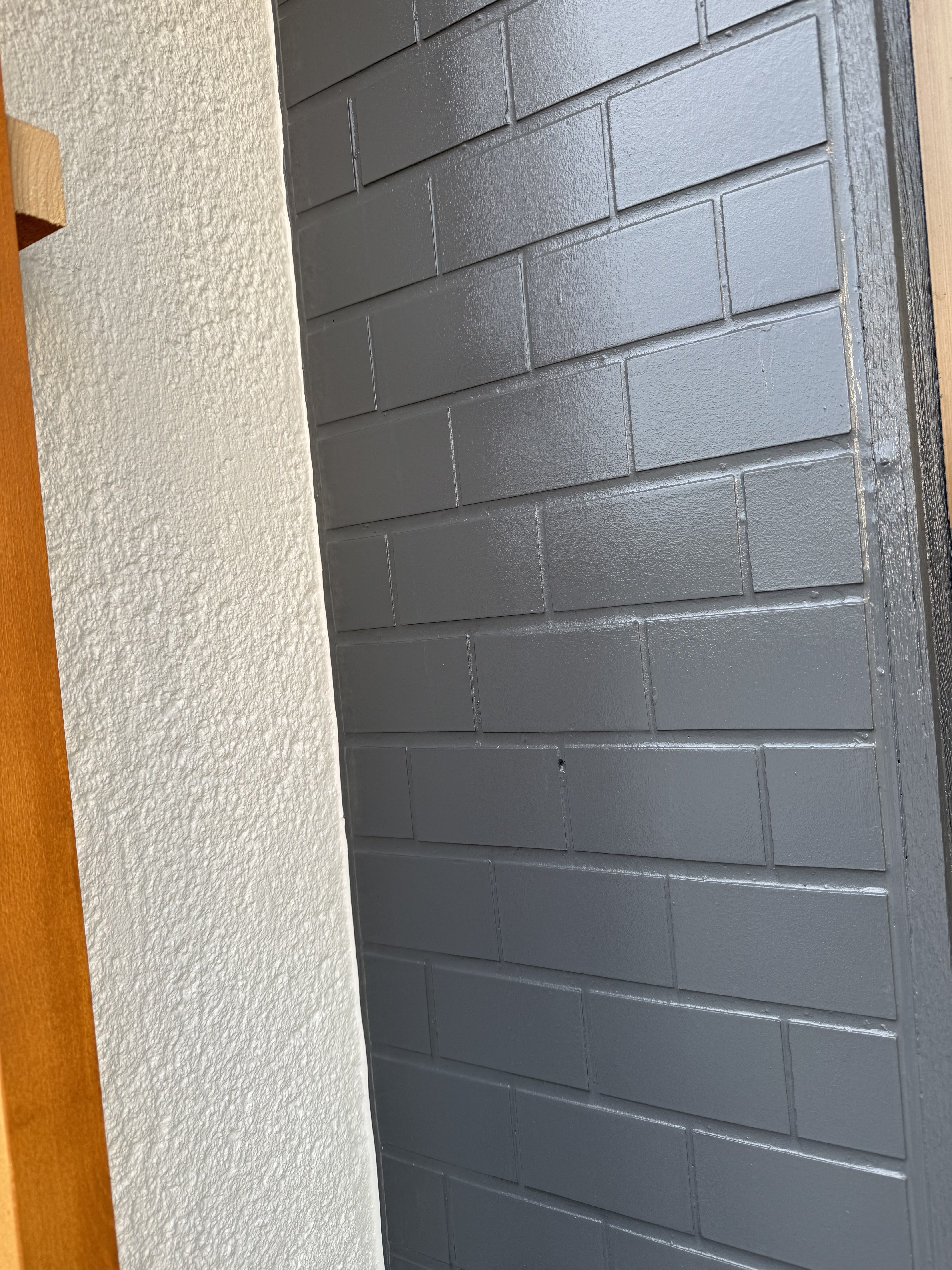 壁まわりのレンガ調の部分は、私の好きなグレーにしました。