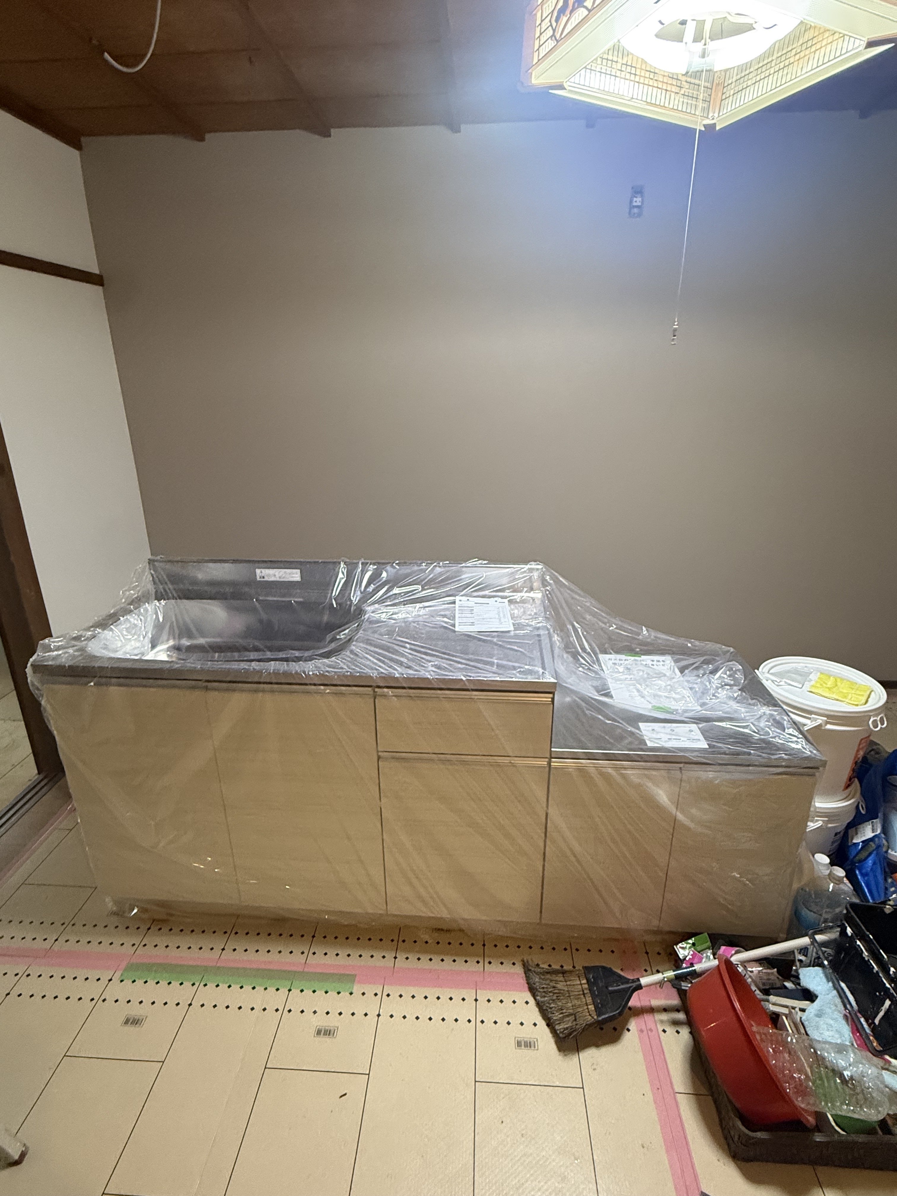 キッチンも新しく届きました。新品なのでとてもきれいで、これから設置していく段階ですが、食事や会話の時間が心地よくなる場所になってくれたらと思っています。