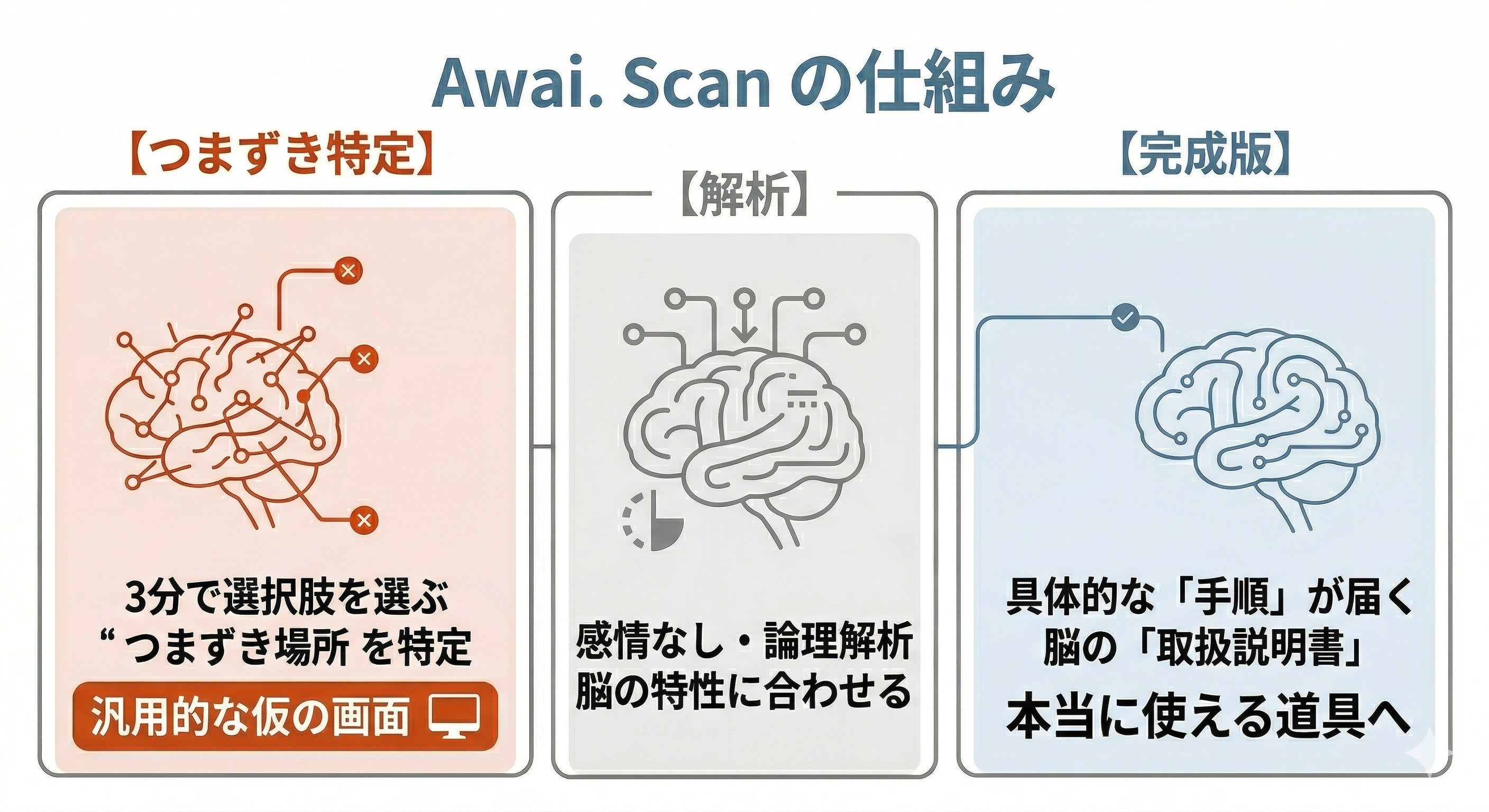 「もっと意識しよう」「忘れ物に気をつけよう」といった無意味な精神論を完全に排除した、あなたの脳に合わせた『取扱説明書』がメールで届きます。