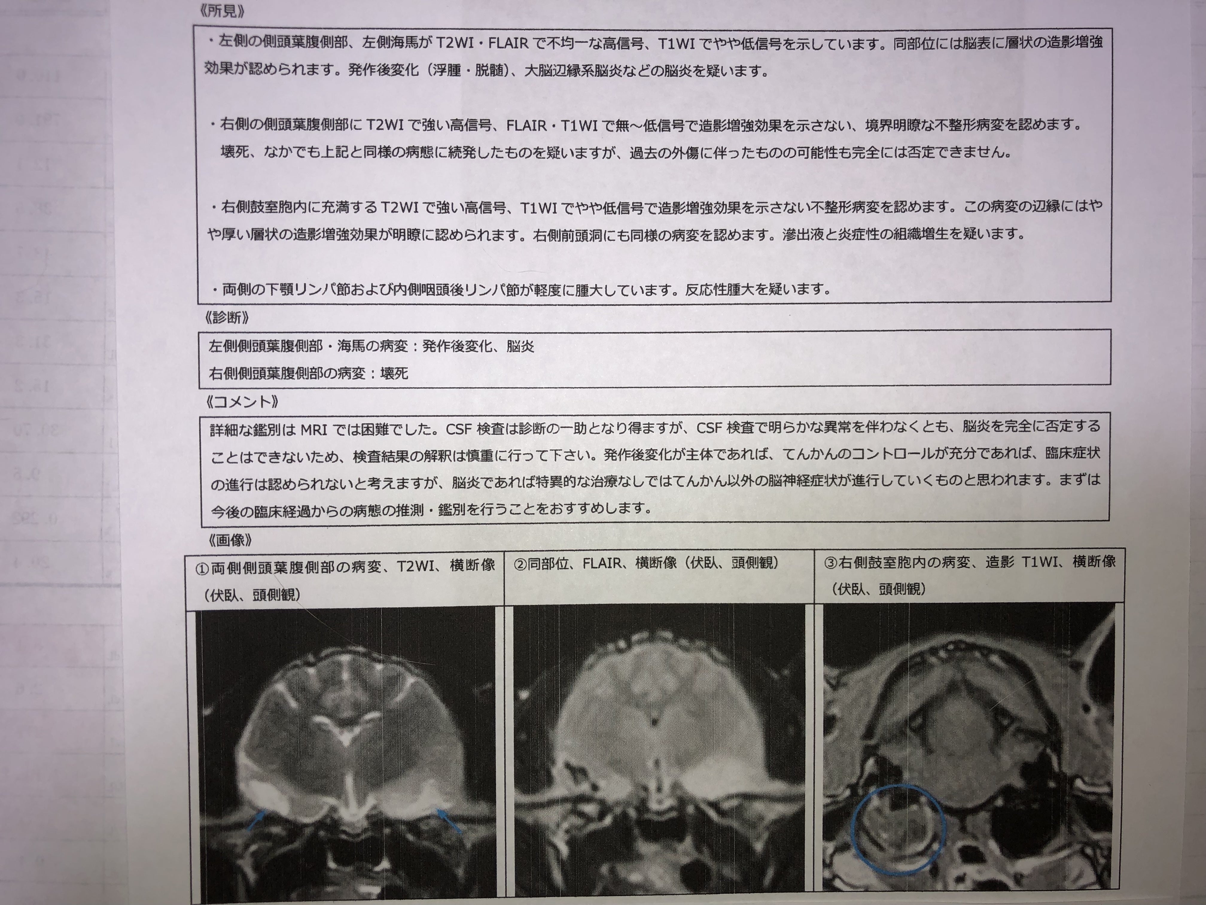 MRI検査結果痙攣を起こした猫ちゃんは思い切ってMRI、エコー、レントゲン、血液検査等を受けてもらいました。FIP※の腫瘍も無く猫エイズも猫白血病も陰性で脳炎の可能性との診断結果でした。現在も治療中です。兎に角、医療費が高額になりましたが苦しんでいる姿を見ていられなかったです。
