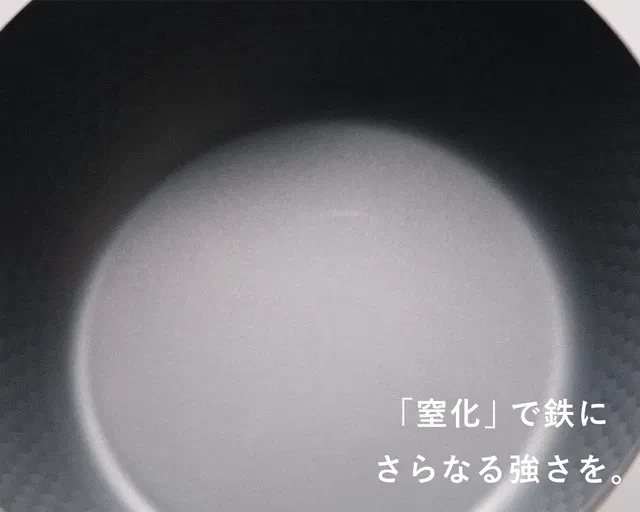 窒化処理を施した表面には、目に見えないミクロ単位の凹凸が生まれます。この凹凸に油がしっかりとなじみ、使うほどに自然な油の膜が形成され、焦げ付きにくい「育った」鍋へと変化していきます。