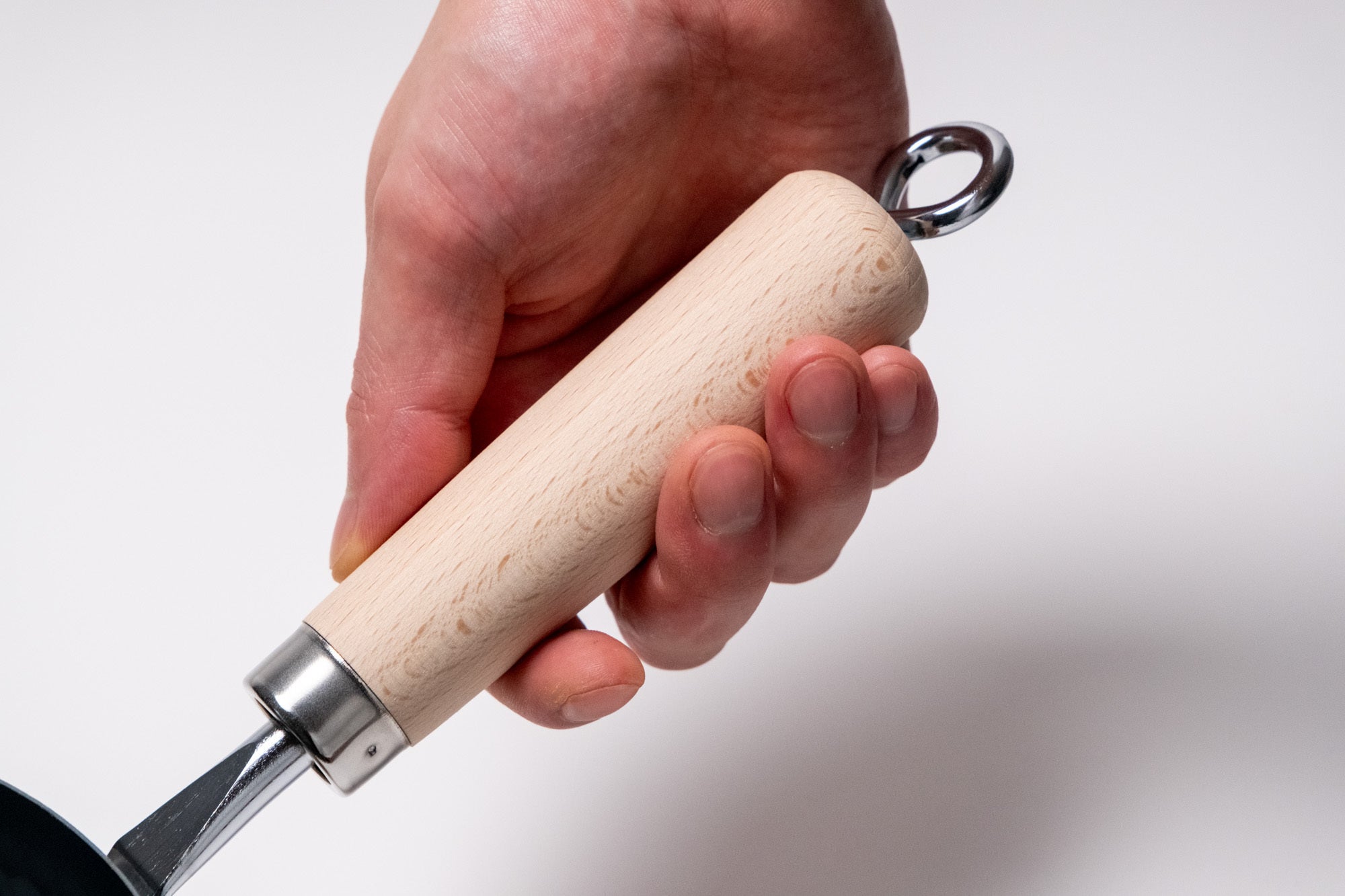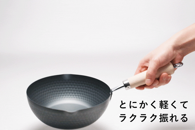 窒化処理によって強度を高めているため、本体を薄く、軽量に仕上げることができました。女性でも片手で楽に扱え、炒め物や盛り付けの際も手首に負担がかかりません。
