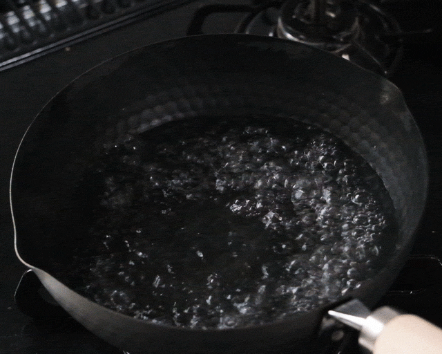 窒化処理を施した表面には、目に見えないミクロ単位の凹凸が生まれます。この凹凸に油がしっかりとなじみ、使うほどに自然な油の膜が形成され、焦げ付きにくい「育った」鍋へと変化していきます。