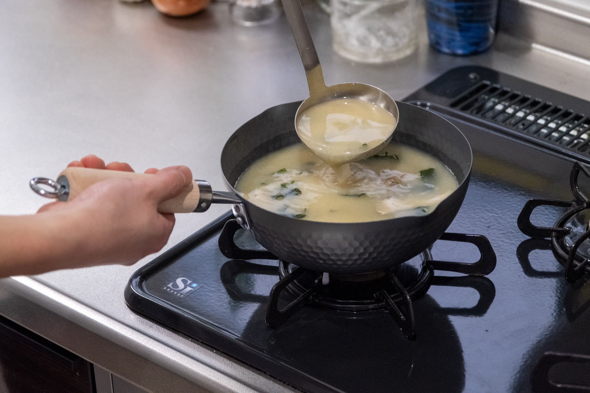 さらに鉄製だから、料理するだけで鉄分が自然に溶け出し、効率的に摂取することができます。たとえば日々の味噌汁。これで作れば素材を工夫せずとも勝手に鉄分アップに貢献します。